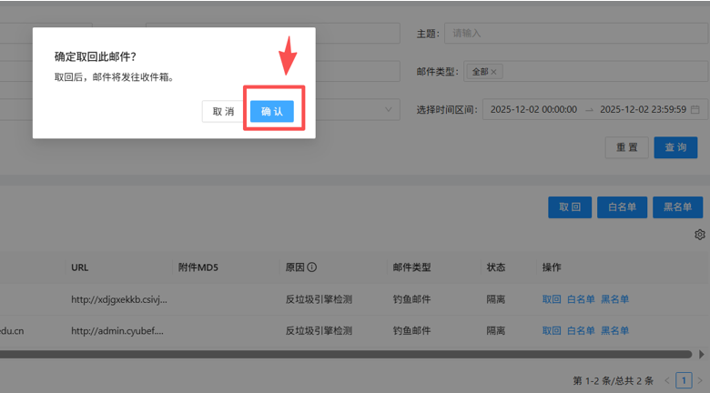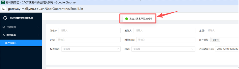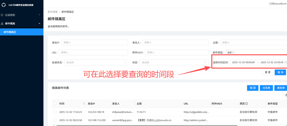 二、如何查看与管理隔离区邮件?