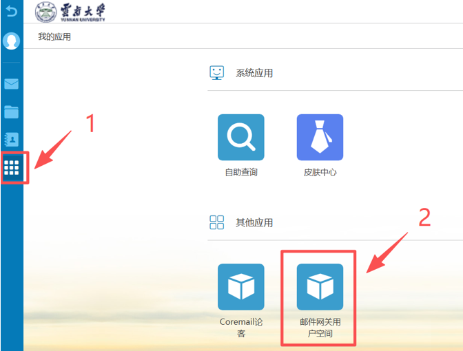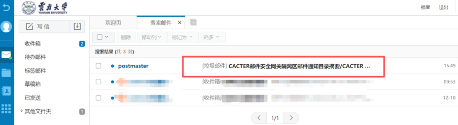2、随时登录邮件网关用户空间查看:您可以随时登录校园邮箱(webmail网页端),点击左侧边栏的“应用中心”→“其他应用”→“邮件网关用户空间”,实时查看和管理所有被隔离的邮件。